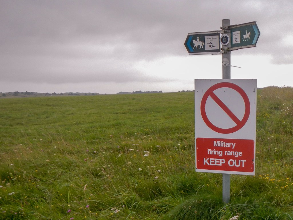 - Many round barrows, long barrows and earthworks – the clue that they are there is that there are MOD signs around them banning digging. It’s difficult to distinguish some from the undulations of the land but I suspect more obvious from the air. That may be partly why I saw quite a few private light aircraft flying round on the Sunday.