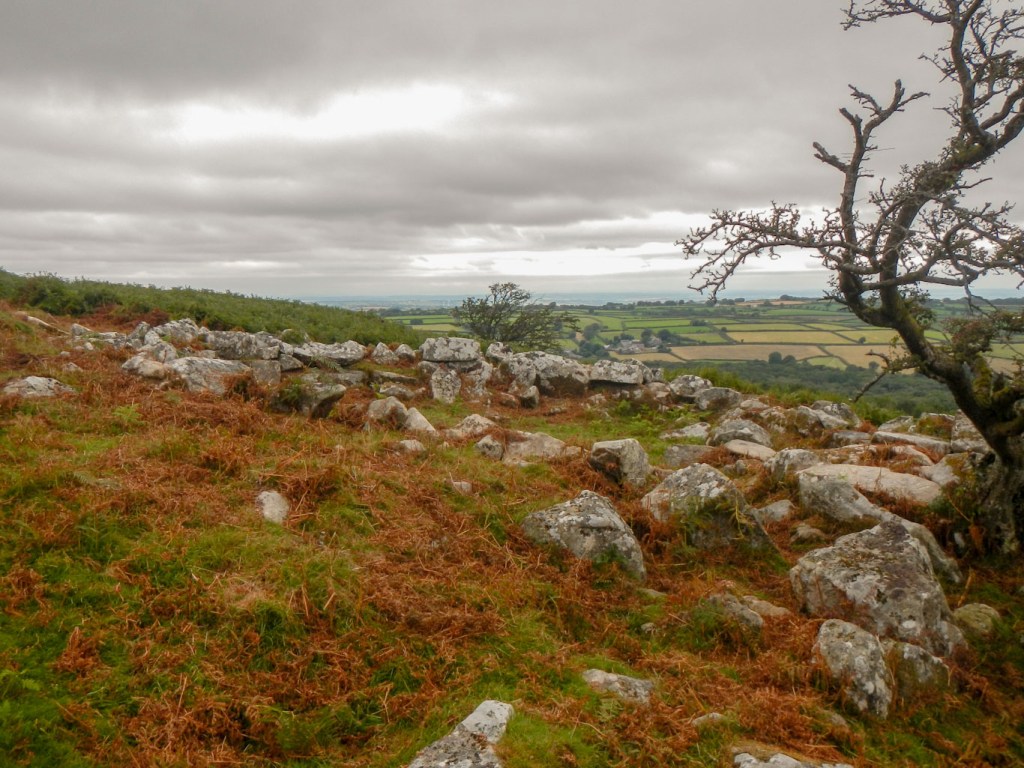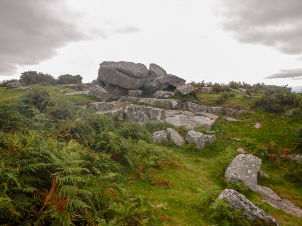I parked in South Zeal village car park at about 08.30am, heading south over the fine viewpoint of Ramsley Hill. After admiring the view towards Cosdon, I made for the minor road that’s part of the Dartmoor Way. There were loads of ripe, juicy blackberries in the hedgerows. I headed past a popular looking pop-up campsite near Moor Farm but soon left the road, passing a few hut circles before reaching Shilstone Tor.