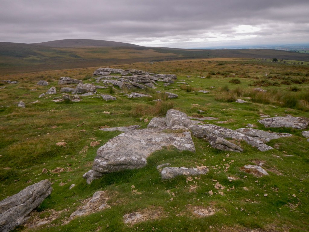 From Buttern Hill I made my way downhill on various animal tracks to a stone circle. Fortunately for me several groups of cattle I saw weren’t too near my planned route. From the stone circle I could see Rival Tor and was soon there. There was a far ranging view including over to Watern Tor.
