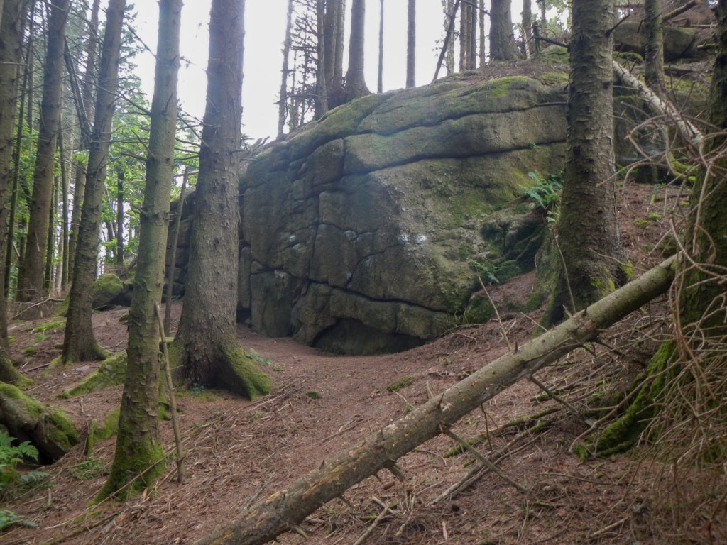 I turned off on to the footpath through Gidleigh Park. After I had crossed the river on the footbridge, I saw what appeared to be a large tor just off the path. I climbed up to explore it, wondering why it hadn’t appeared on my list. After I got home, I checked on https://www.torsofdartmoor.co.uk/index.php and discovered that this was Lower Gidleigh (North Park) Tor – on private ground but accessible. It isn’t on the LDWA list despite being huge. The one on the LDWA list was Gidleigh Tor which is further west than I had ventured (on open land). I hadn’t listed it to visit because of it being on private land and I hadn’t sought permission. There is also a third tor on the land in this area – Gidleigh Bottom Tor.