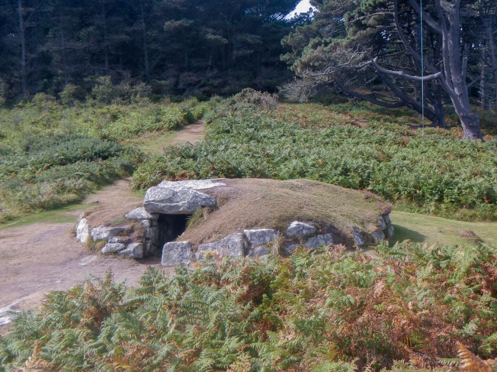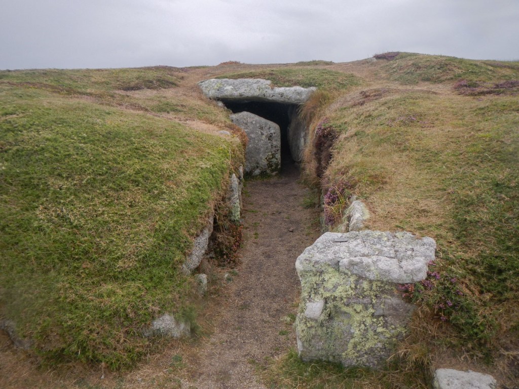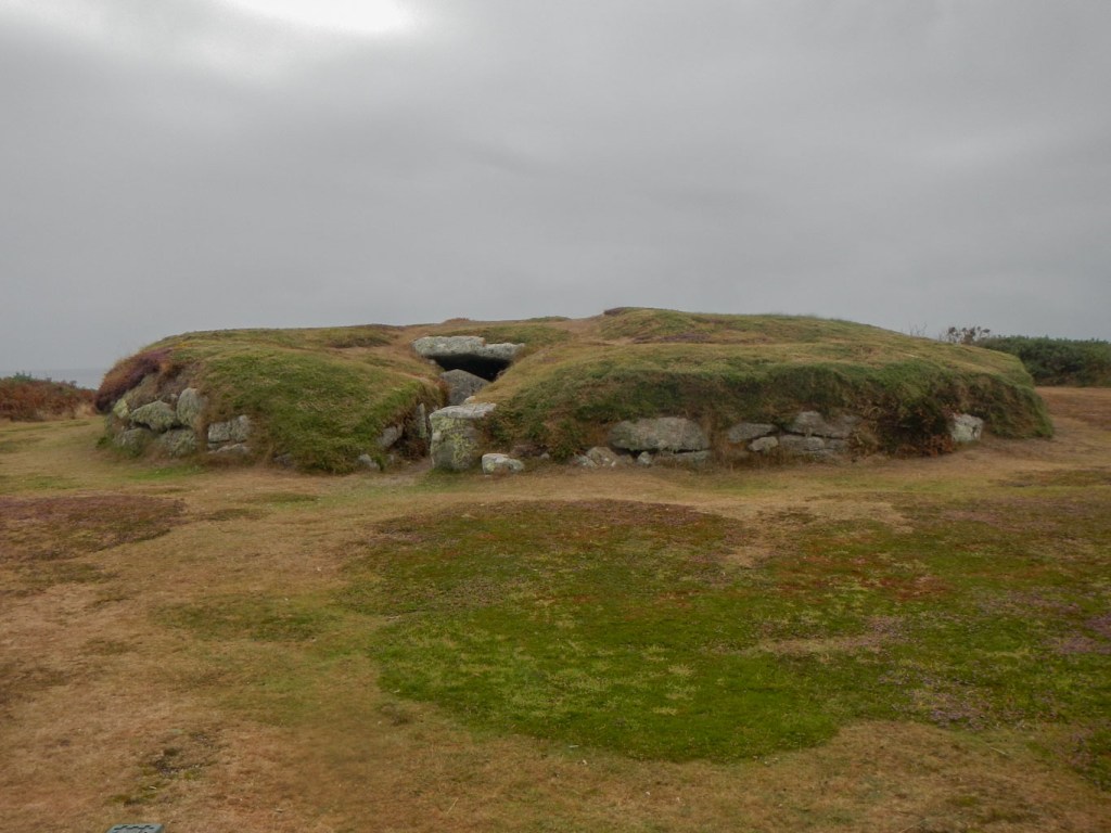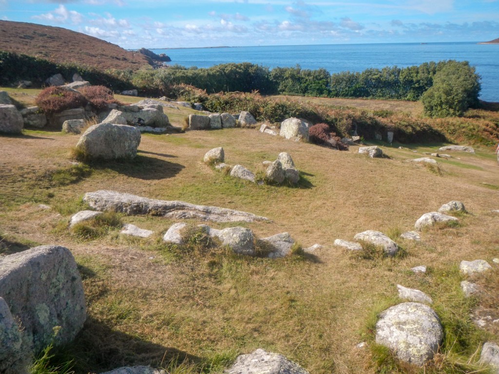 - As we walked round St Mary’s we discovered several well preserved Bronze Age burial chambers, known as entrance graves. These are characteristic of the Scillies and parts of Cornwall. Most comprise a roughly circular mound retained by a stone kerb and built over a rectangular, stone-lined chamber which is roofed with large granite slabs. Entrance graves seem to have continued in use on Scilly long after individual burial had become the usual practice on the mainland. Having realised what they look like, it is possible to pick out other less well preserved examples both on St Mary’s and on the other islands. In prehistoric times sea levels were lower so the current islands of St Mary’s, Tresco, Bryher and St Martin’s would have been a single land mass.