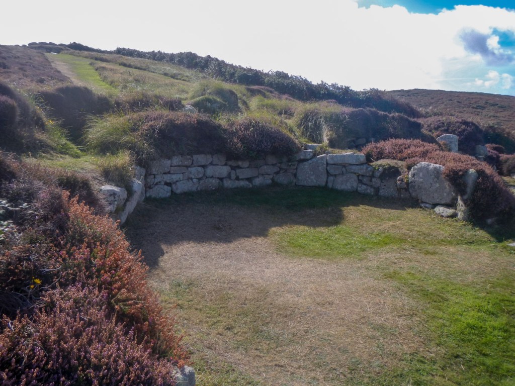 - Halangy Down Ancient Village – this later Iron Age to Roman settlement lies below Bant’s Carn at the south-west edge of Halangy Down. Excavation in the 1950s revealed eleven interconnecting stone built dwellings. The Iron Age and Romano-British inhabitants of the settlement here probably lived in much the same way as their Bronze Age predecessors. The whole complex reminded me of Skara Brae, a Neolithic settlement in the distant Orkney Islands.
