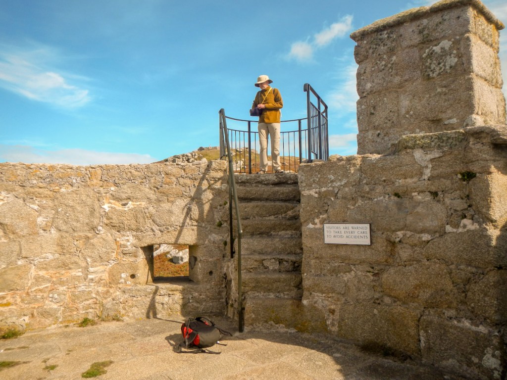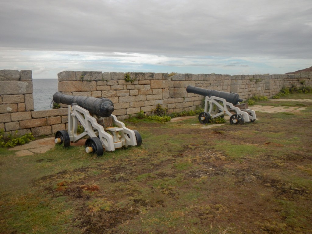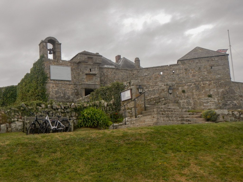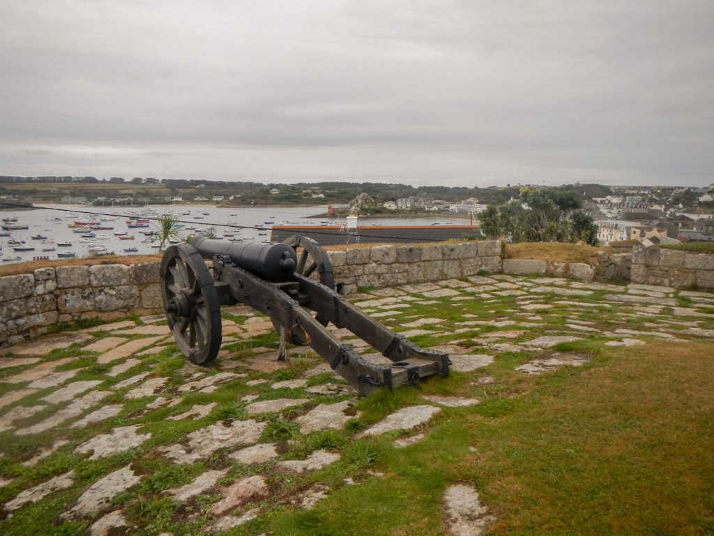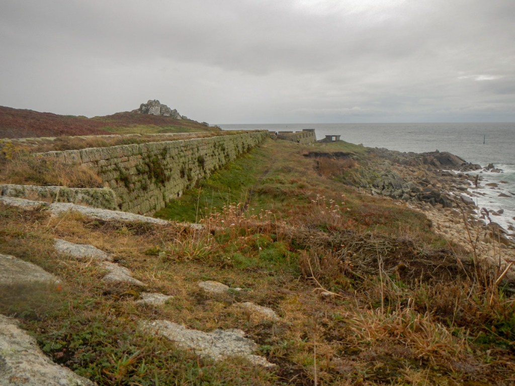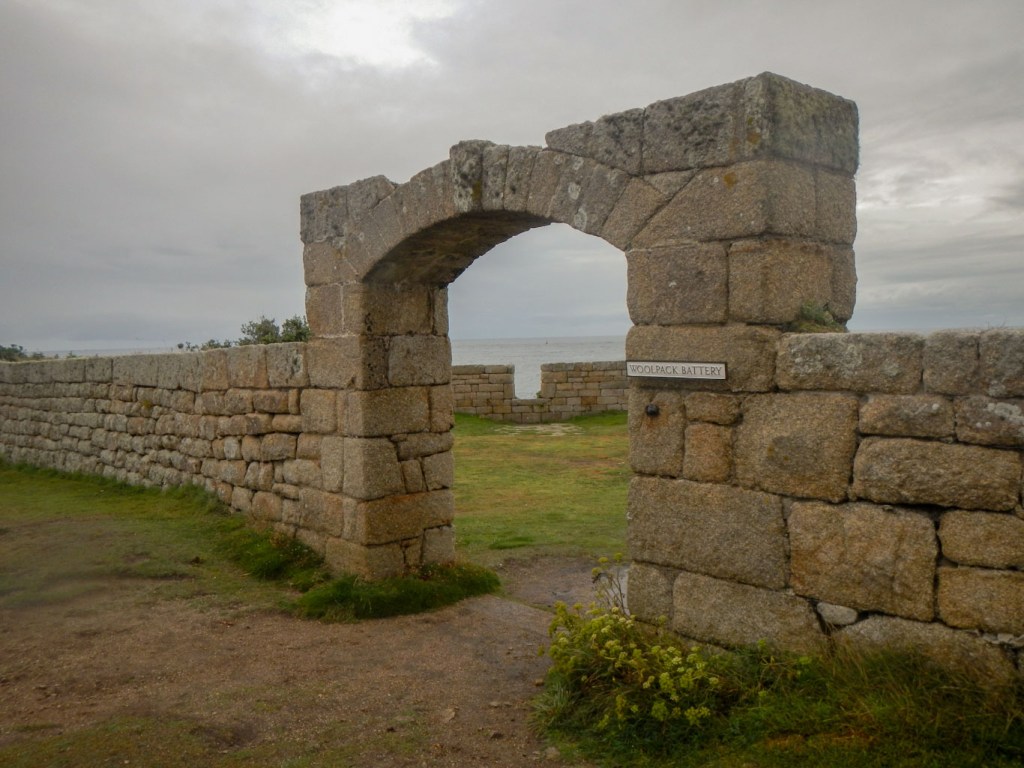 - The Garrison on St Mary’s – Our campsite was on the field within the boundary of the Garrison Walls so, in addition to our perambulation around the walls, we entered and left the garrison on a daily basis. English Heritage state that this is one of the most remarkable and impressive coastal defence systems in England. The original defences date from the 1590s, when the threat, which never materialised, was of Spanish invasion. The garrison became a Royalist stronghold during the English Civil Wars in the 1600s. Invasion by France or Spain remained a possibility during the 17th and early 18th centuries. The Elizabethan curtain wall was gradually extended until it surrounded almost the whole of the headland, with bastions covering every possible angle of approach from sea or land. The Garrison was used again in the First World War, when it was re-armed and accommodated almost 1,000 servicemen. In the Second World War the Isles of Scilly were at the forefront of the Battle of the Atlantic. Large numbers of servicemen were again stationed here and the Garrison was an important signal station, with pillboxes built within the 18th-century batteries.