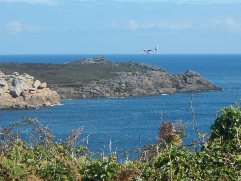 The views flying over Devon and Cornwall were superb with just some cloud cover over parts of Dartmoor. It would have been helpful to have taken a map in hand luggage to aid recognition of the various places we travelled over, rather than struggling to remember our Cornish geography. With flying time of under an hour, we were soon clearing the low cliffs at the south east of St. Mary’s and touching down on the runway. The baggage arrived rapidly and we adjusted our luggage into carrying mode to walk to the campsite.