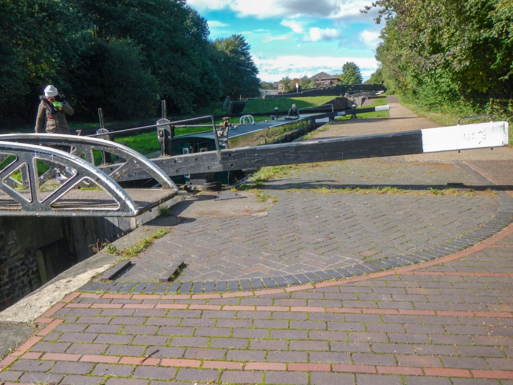 Seeing a boat pass through just one of the flight of three locks made me realise how long and tedious it must be to get through a long flight of locks – as well as being an enormous amount of hard physical work manually opening and closing the lock gates.