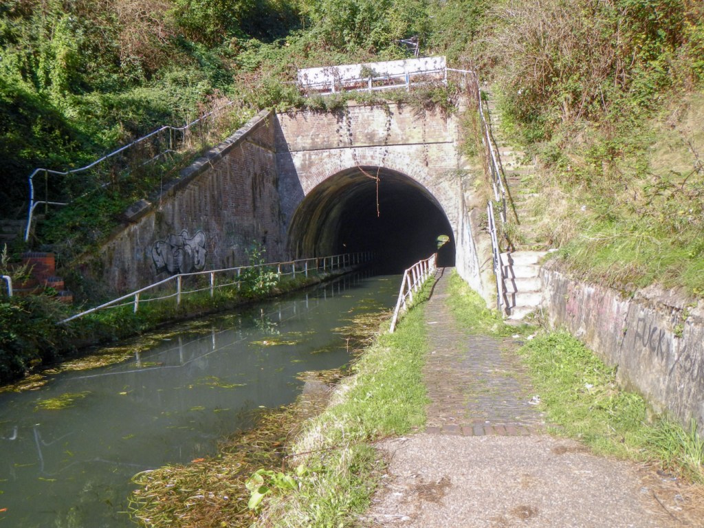 Information boards explained about a couple of loops off the main canal. It is amazing to think that this enormous network was all dug by hand. Near Sandwell, I had to decide whether to follow the shorter New Main Line or the longer Old Main Line, opting for the former as it meant I would walk through a tunnel, although see fewer locks. Engineered by Brindley in 1768-69, the Old Main Line solved the problem of getting over a hill by building locks whereas Telford in 1827-29 solved it by building a deep cutting and the 330m long Coseley Tunnel, with only a short flight of three locks needed near Tipton. This speeded up traffic by taking seven miles off the journey as well as being quicker because of fewer locks.