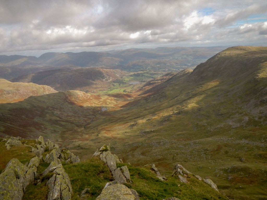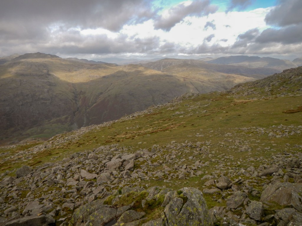 The views were even better from the top of Wetherlam, the first of our seven planned Wainwright summits for the day. There wasn’t really any concern over the time – still only about 11.20. Having become accustomed to less defined paths and longer distances in Scotland, it all seemed incredibly quick and easy. Of course the car park we had used did mean our walked ascent was decreased.