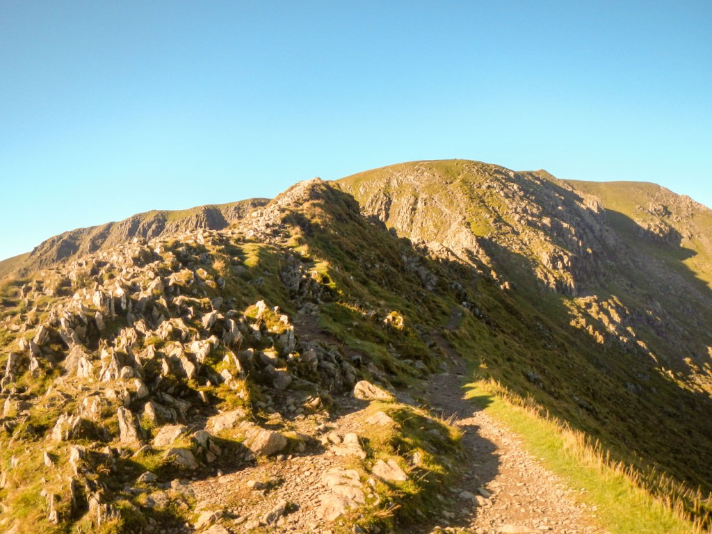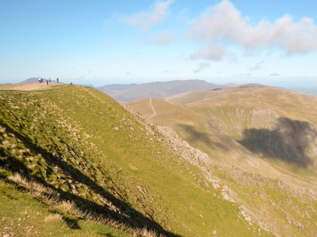 The hardest part of the scramble was over and it just remained to climb upwards on a rocky poorly defined path to reach the summit area. Near the top there is a salutary reminder of the risks in the form of a memorial to the artist Charles Gough, who slipped and fell from Striding Edge in April 1805. There is apparently at least one further memorial but I didn’t see it. The view of Striding Edge from the top looks impressive.