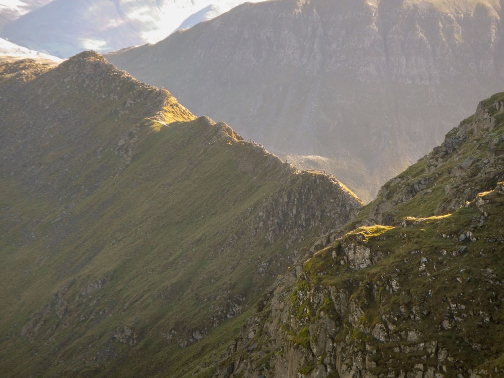I was excited to be on this ridge after anticipating the adventure for a long time. However my excitement was tinged with nervousness about managing the climb – in particular the clamber down the “bad step” partway along the ridge. There is apparently a way round this but I think it’s quite difficult to find.