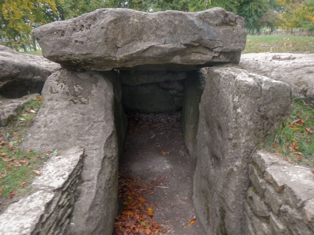 From Silbury Hill I walked on through this Neolithic “theme park” to West Kennet Long Barrow, built around 3,650BC. It is huge – just over 100 metres long with a maximum height of 3.2 metres and width of 25 metres. Although it is now covered with turf it would originally have had bare chalk sides and would have stood out against the landscape. It consists of a core of sarsen stones capped with chalk rubble from the surrounding quarry ditches. At least 46 bodies were buried in it and it was eventually closed around 2,000 BC. Nowadays, members of the public can enter the impressive chamber of the barrow.