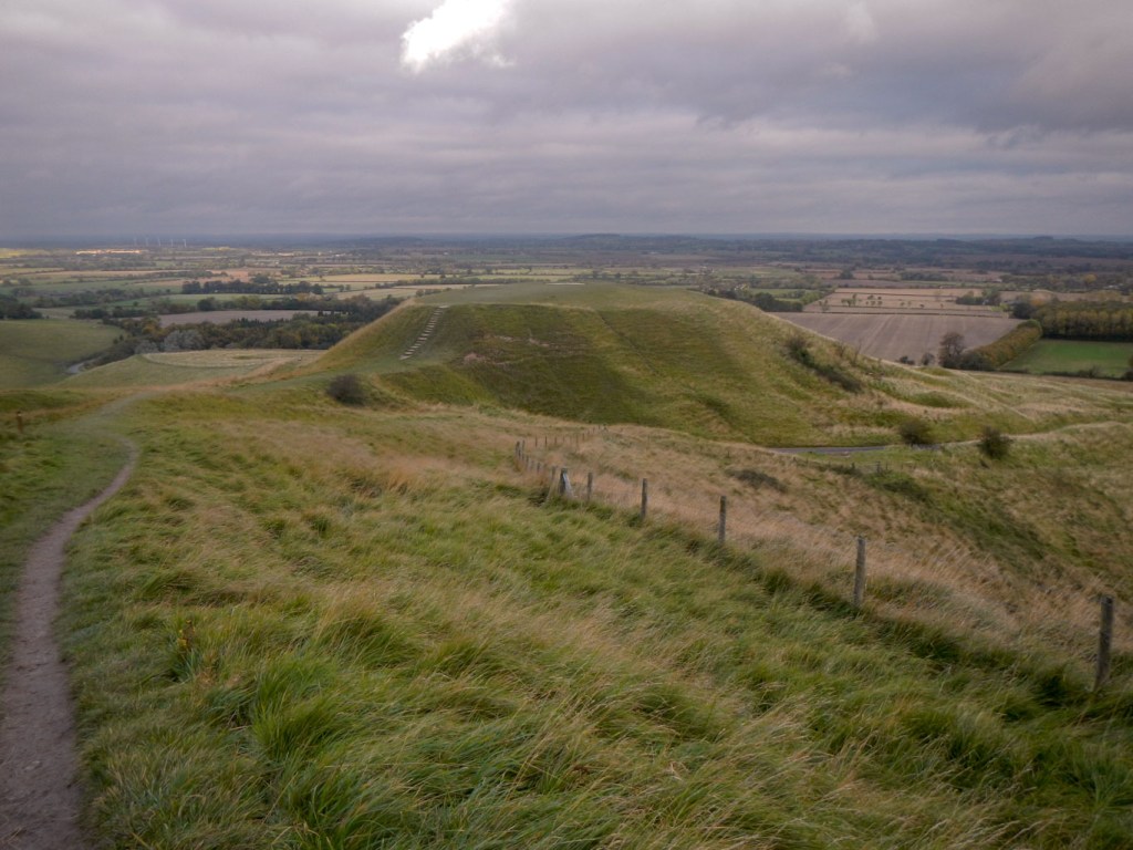 Further on I diverted to walk over another impressive Iron Age hill fort, just off the Ridgeway path at Liddington with wonderful views over Swindon.