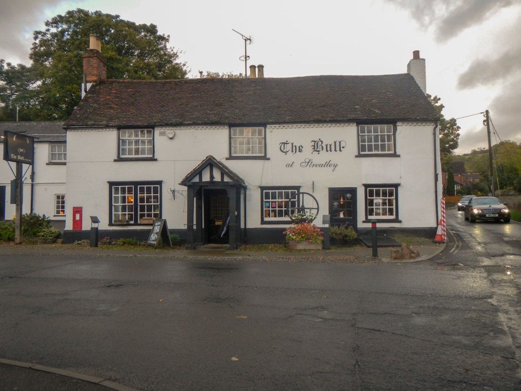 I enjoyed walking along an airy path with fine views most of the afternoon before descending to the affluent looking Berkshire settlement of Streatley which along with the adjoining Oxfordshire settlement of Goring, straddles the border. In any case it was Streatley in Berkshire where I stayed at The Bull Inn famous for being made one of the stops in Jerome K Jerome’s book “Three Men in a Boat”.