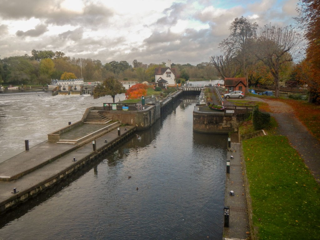 I strayed over the county border that evening to stock up with provisions from a shop in Goring. Next morning (29 October) I crossed the Thames again and then turned north on a route parallel to the river. Sadly the river wasn’t visible from the path initially as private garden frontages stretch down to the banks. However eventually, after passing through the village of South Stoke, the path did follow the river bank through a conservation area. Unfortunately it started to pour with rain, but at least that meant that I could actually wear my brand new waterproofs, which I had carried round for weeks and even managed a whole expedition to the Lake District without needing to wear them.