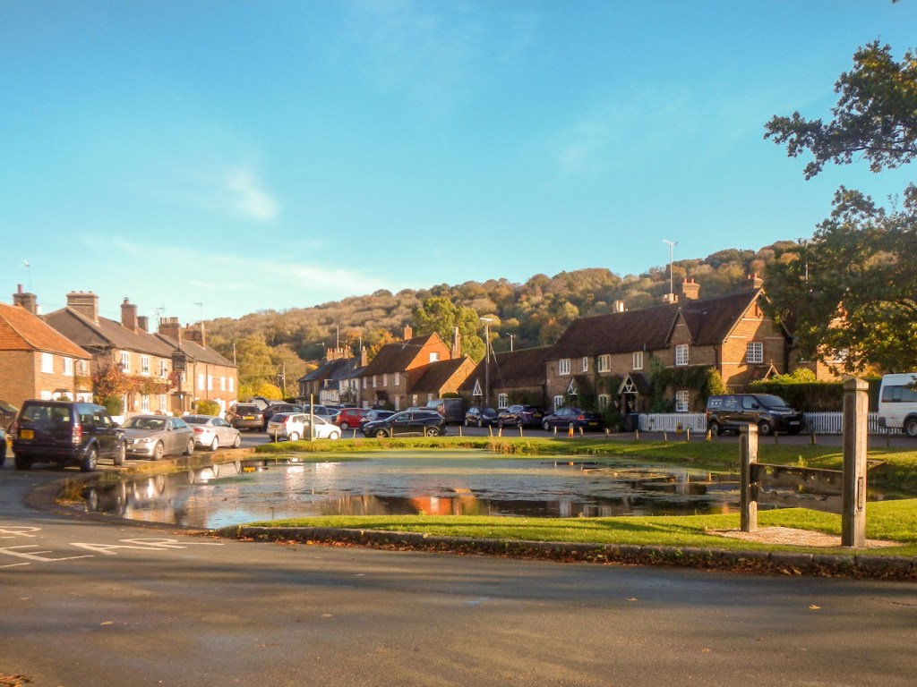 I had arrived far too early so I wandered round the churchyard looking for my grandparents’ grave, which I had never seen, although I had visited Aldbury many times. I found the right grave – eventually – complete with an inscription for my grandmother, although not for my grandfather. It had started as a grave for my great grandparents but many family members’ ashes had been interred there over the years. I shared a set of great grandparents with the person I was meeting later at The Greyhound. It was the final resting place for his grandmother as I saw the inscription as well as for his parents. His mother “Auntie” Mary, a lifelong resident of Aldbury, was my father’s cousin but I remember that my father had been evacuated to the village for part of WW2. My father, being an only child, the relationship was close, and “Auntie” Mary had been both my god mother and my favourite “Aunt”. I walked down to “Auntie” Mary’s home and then doubled back to the scenic stocks and duck pond, opposite The Greyhound where I was booked to stay.