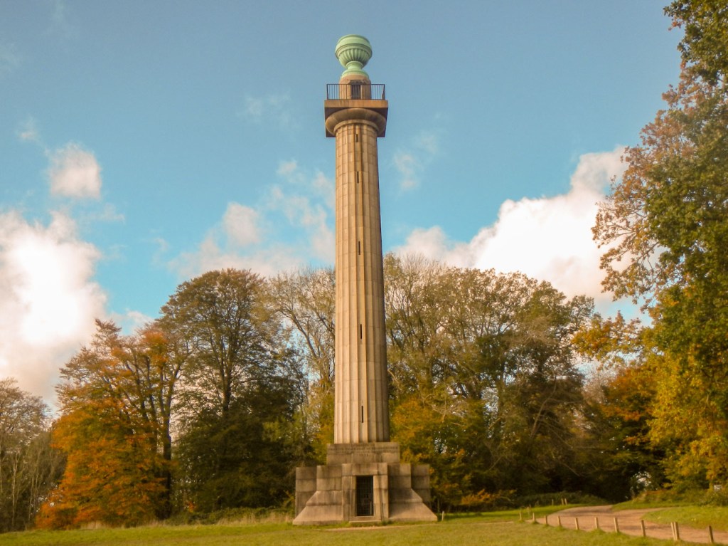 I saw a path to the right along a tempting looking ridge so followed that before turning southwards across some fields and soon into the mixed woodland of the Ashridge Estate. There is a sign to the Bridgewater Monument and I followed the major track to this impressive monument dedicated to the third Duke of Bridgewater who pioneered the construction of canals in the early part of the Industrial Revolution. For a moment I thought that it would be possible to climb to the top, then discovered that the people I had seen there were National Trust staff inspecting the monument. It turns out that the monument is open to visitors but just weekends to the end of October and only if the weather is suitable.