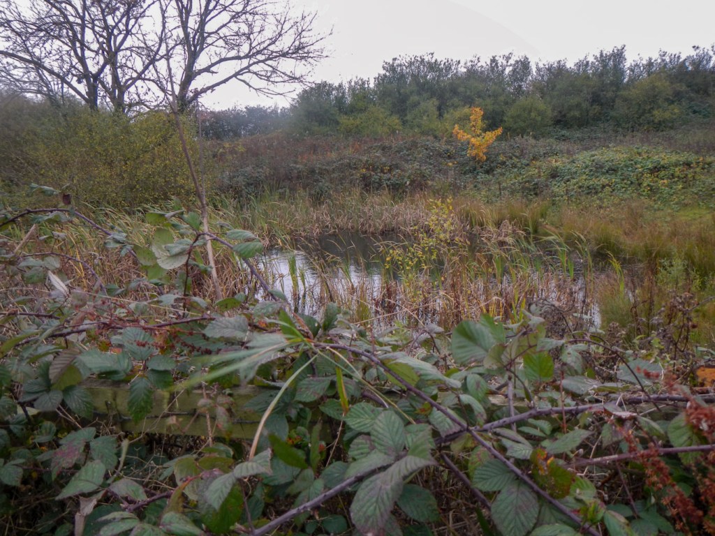 The weather was warm for the time of year although intermittently drizzling rain – nothing that needed waterproofs though. I passed a dew pond – an important water source in this chalk landscape.