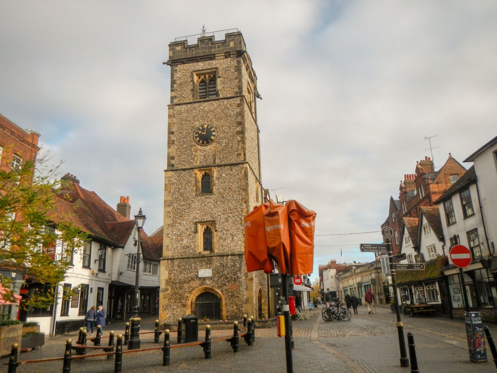 Fortunately it didn’t take me too long to find the right way and I was soon walking along a quaint street to reach the medieval clock tower just as it struck 10am. It’s the only surviving medieval town belfry in England and is designated as a Scheduled Ancient Monument. The people of St Albans built the tower, which was completed by 1405 as a symbol of their resistance against the power of the abbot of St Albans. Unfortunately it’s only open to visitors on summer weekends so I had to be satisfied with the view of the tower from the street rather than the view of the city from the top.