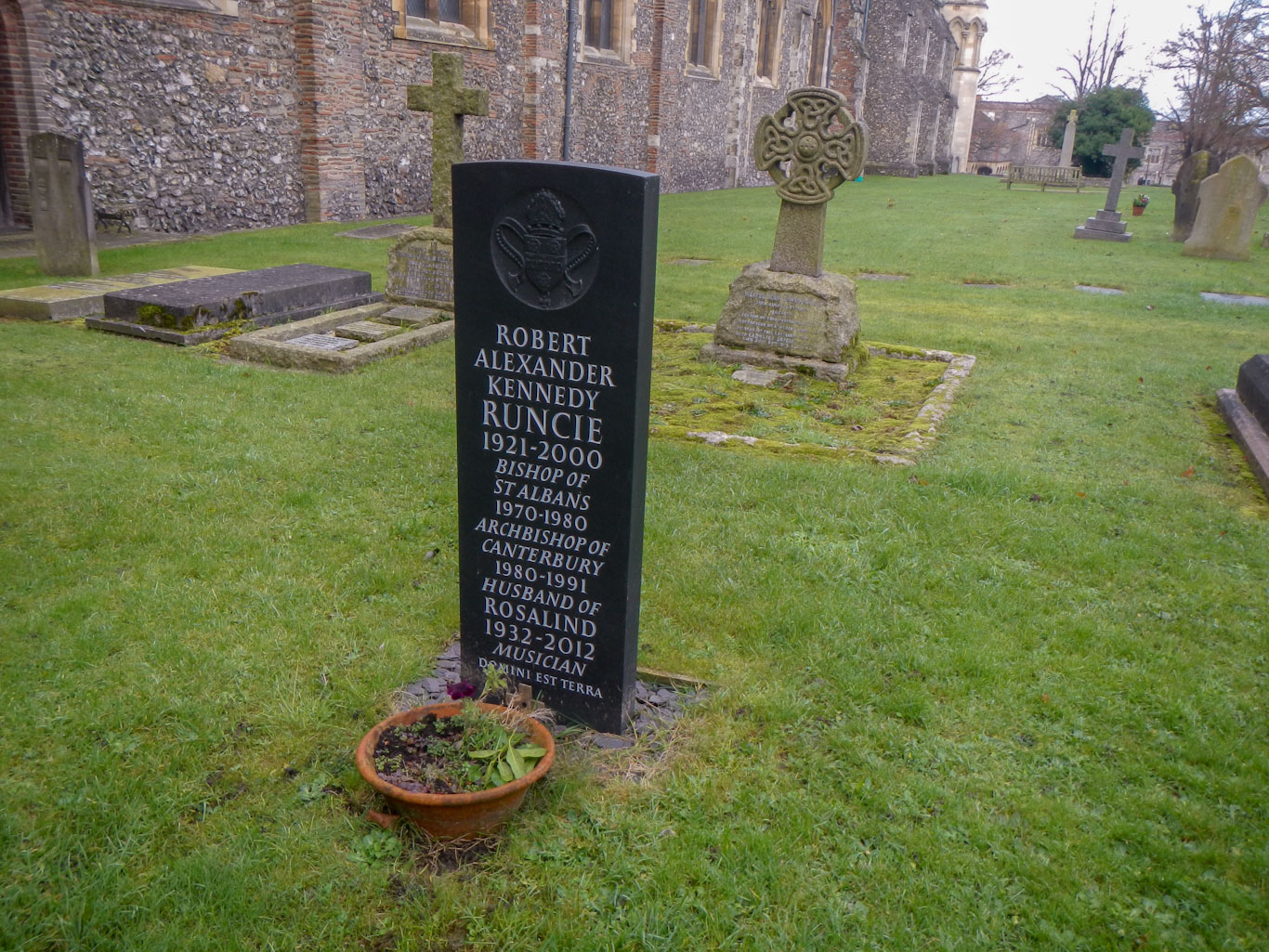 From the clock tower, it’s only a short way to the cathedral. I wandered past, discovering the grave of Robert Runcie – previous Bishop of St Albans and then Archbishop of Canterbury – in the grounds. However I didn’t look in the cathedral just then – leaving that for later in the day.