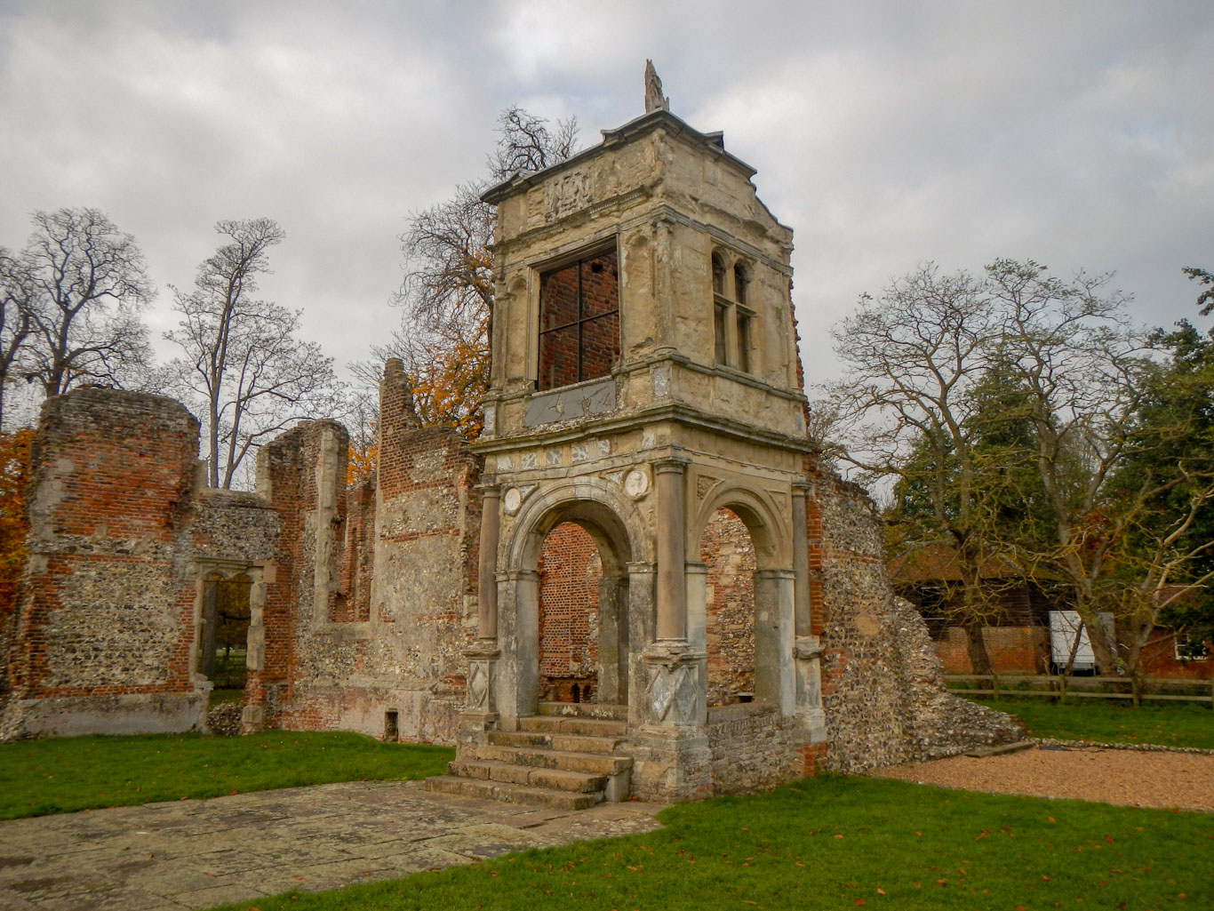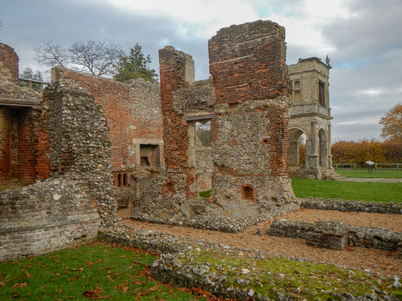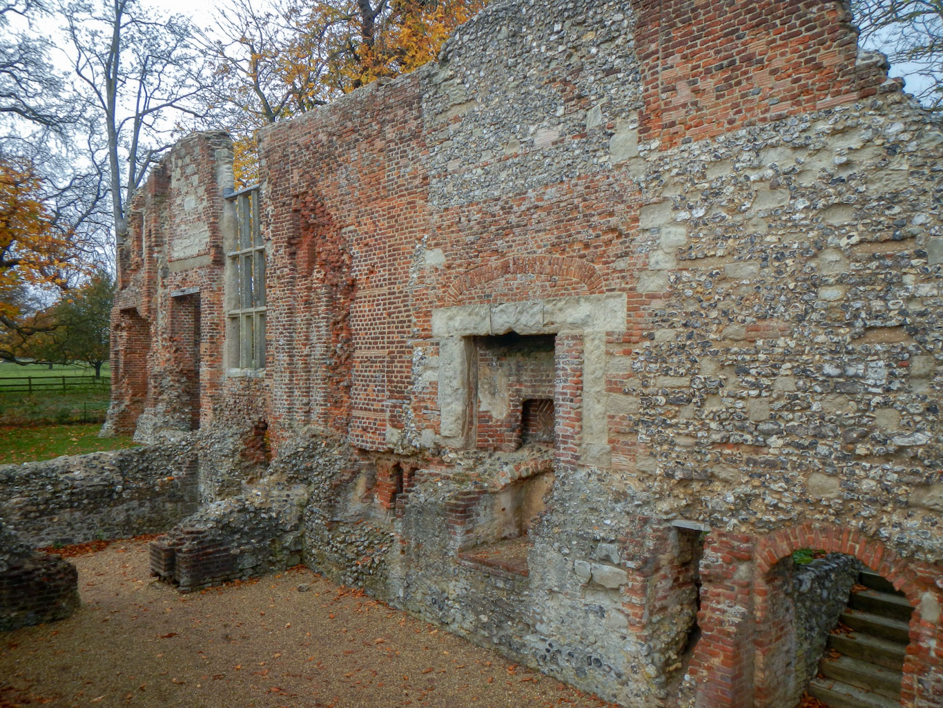 From the theatre, I walked on up the long Gorhambury Drive and past the big “new” house to Old Gorhambury. The ruins give some idea of the grandeur of the mansion constructed in 1563-68 by Sir Nicholas Bacon, the Lord Keeper of the Great Seal. The porch was the focal point of the house and still stands. Sir Nicholas added a long gallery to the house in 1577 in time for a visit by Queen Elizabeth 1. Queen Elizabeth visited at least four times and was entertained lavishly. On one visit of five days the cost of food, entertainment and gifts was reputedly £577, equivalent to over £86,000 at the time the English Heritage information board was erected. After Sir Nicholas’ death in 1579, the house was inherited by his youngest son, the philosopher and scientist Sir Francis Bacon, who spent his last years here carrying out scientific experiments and writing philosophical works.