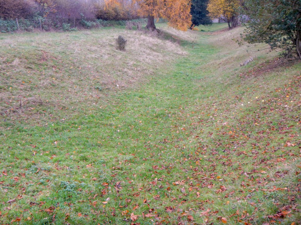 I walked back down the drive, noting a bank which I thought was of possible archaeological significance and was delighted to confirm on my map that it was indeed denoted as “Devil’s Ditch”.
