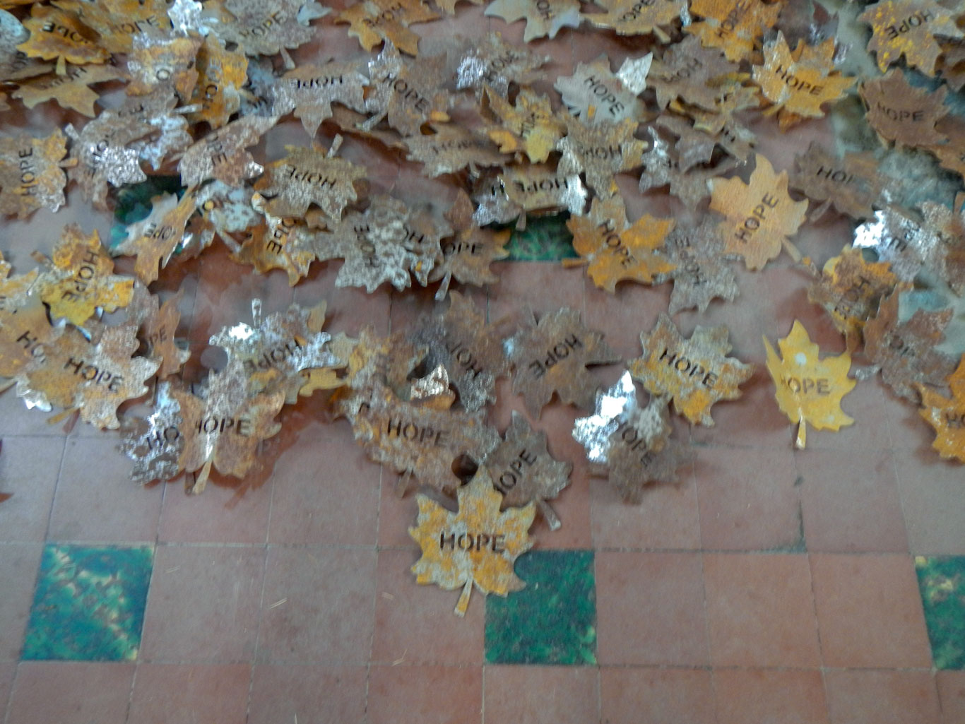 A further special feature at the time I visited was the “Hope” sculpture – “The Leaves of the Trees” designed by Peter Walker and visiting various venues round the country. It was conceived to honour those who have died during the Covid19 pandemic and consists of 5,000 leaves with the word “HOPE” on each. The steel from which each leaf is made symbolises our resilience and collective strength. The shape of a sycamore leaf denotes strength, protection, eternity and clarity, symbolising this period of time during Covid and our hope for the future.