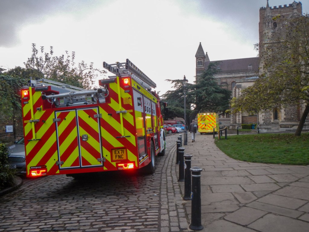 After my visit, I retired to the café next to the entrance for coffee and cake. Unfortunately the fire alarm sounded and we were all asked to evacuate the building. I left with my coffee. Eventually two fire appliances arrived to join the ambulance in front of the cathedral that had already been called to manage an elderly lady who had fallen in a prior separate incident. There was no panic – everyone assumed it would be a false alarm. Fortunately that was the case so I was able to return to the café and finish my cake – the best bits with lots of icing so I was pleased to get back!
