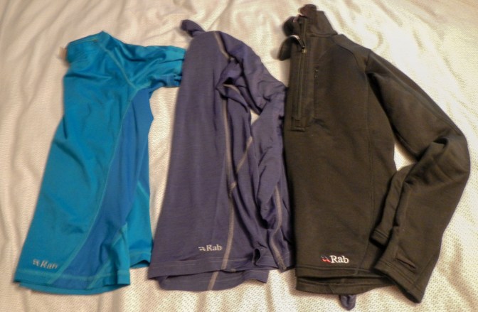 Considering footwear, I still like to wear boots rather than shoes on most walks, especially as I often walk away from paths over open moorland when it’s permitted. Meindl leather boots appear to fit me well. I’ve found that the solid “Grangers G wax” works to keep them waterproof and the leather in good condition; it does need more effort to rub in than the liquid products. Under my boots I wear thin sock liners (easy to wash and dry) and thicker socks over these – most of the socks I have at the moment are Bridgedale. I usually wear gaiters to avoid the lower part of my trousers getting muddy and to decrease the risk of water getting into my boots over the top of them. I started using poles a few years ago – they are particularly helpful to me for walking downhill and for finding holes and “testing” bogs. Mine are very light as they’re made of carbon fibre.