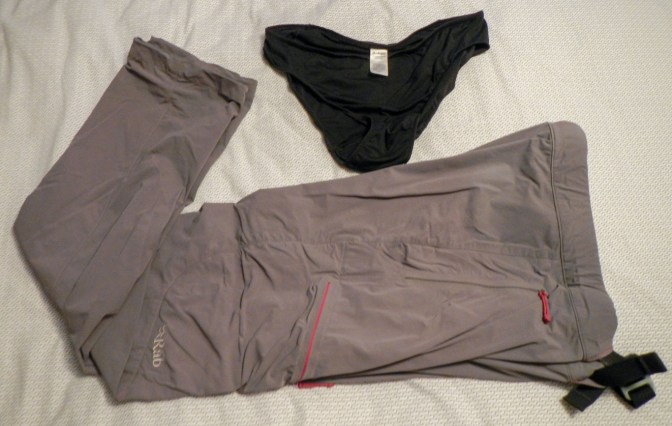I have lightweight wicking underpants (easy to wash and dry) and my walking trousers have plenty of zipped pockets.