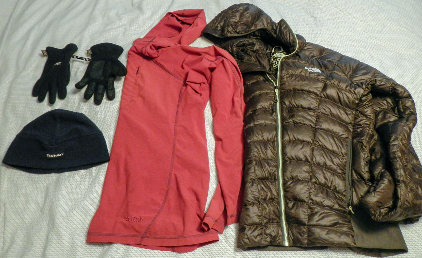 My clothing is all lightweight and easy to dry. My base layers are made from wicking fabric and various ways it is supposed to dispel odours when worn for several days. The combination worn varies with the weather conditions. The components on top are a short sleeved base layer, long sleeved base layer, mid layer fleece, outer warm down jacket layer and wind resistant layer. Usually in UK, while I am moving, the base layer(s) and wind resistant layer are the most I need, sometimes with the mid layer fleece as well. My wind resistant layer also has a hood and a useful zipped breast pocket big enough for my hand held GPS or a very folded Lightweight waterproof Harvey’s map – they are virtually indestructible! Of course I have a hat and gloves as well. I rarely need my down jacket while walking but it fits between my mid layer and outer wind resistant top. However I wear it more often in the evening once I am at the camp site.