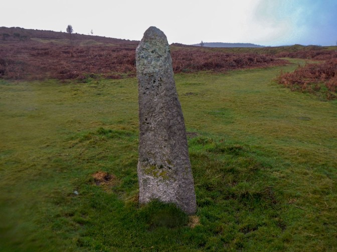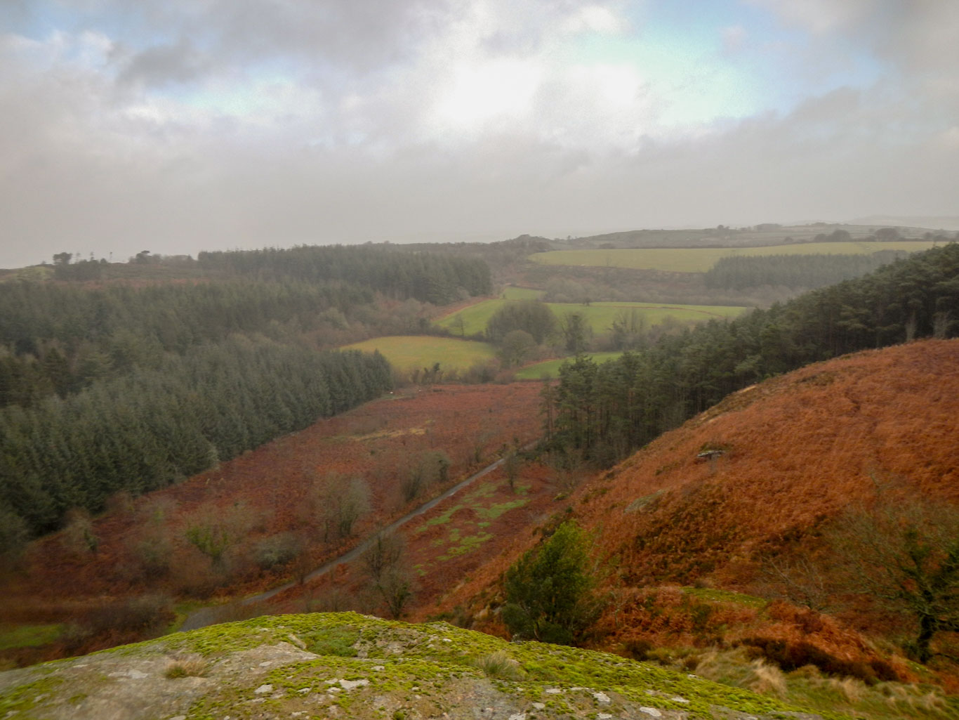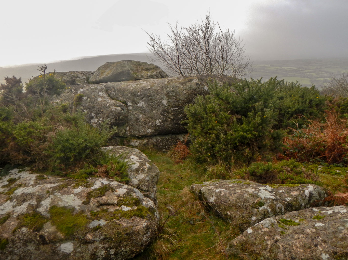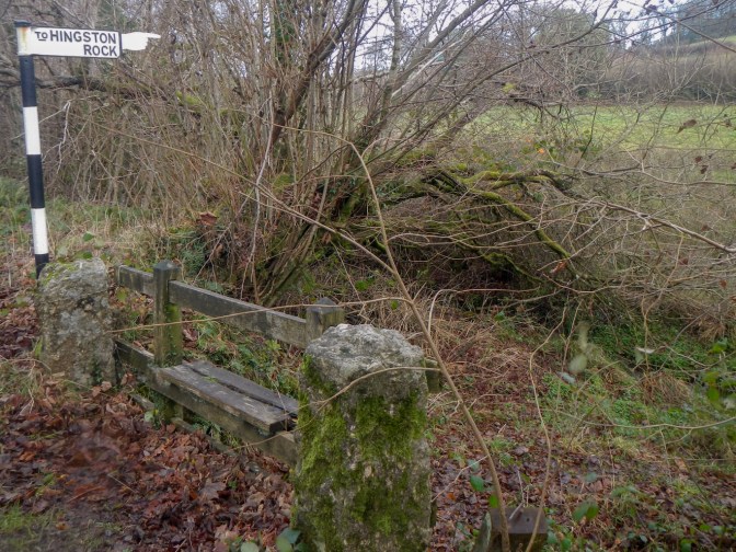 We didn’t stop long as we needed to keep mobile to stay warm – or put on some more layers of clothing. We walked up to the main B3212 and opted to walk a “dog-leg”, crossing the road and walking via Doccombe Cross to reduce the distance walked on the B road. A short walk on this relatively busy road was unavoidable though in order to reach the path up to Hingston Rocks.