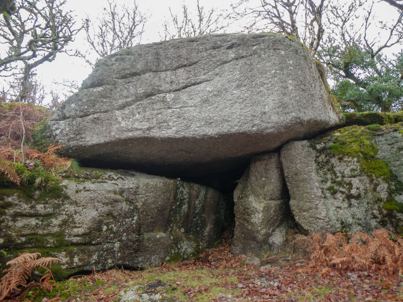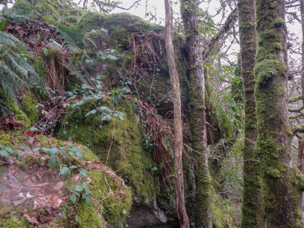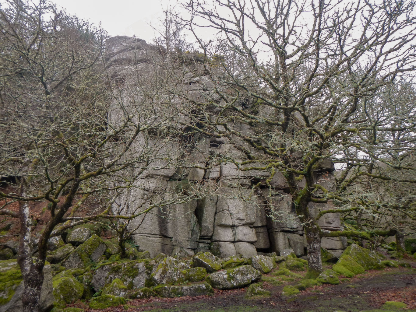 I crossed a stream and used my Sat-map to guide me up a steep slope to the almost inaccessible outcrop of broken blocks that makes up Rowbrock Tor, much of which is obscured with vegetation.
