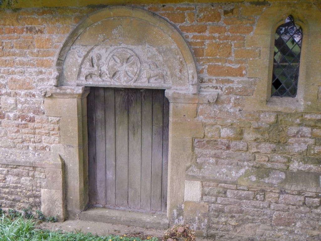 Inspired by the interesting tombs I saw at Little Rollright church, I extended my walk to look at the church in Salford. Here the twelfth century north doorway on the outside of the church attracted my attention. The doorway features a carved tympanum with figures of a centaur drawing his bow and a lion flanking a Maltese cross. The centaur is almost certainly a depiction of the Zodiac figure of Sagittarius, while the lion is probably Leo. I also spotted the base of a medieval cross in the churchyard.