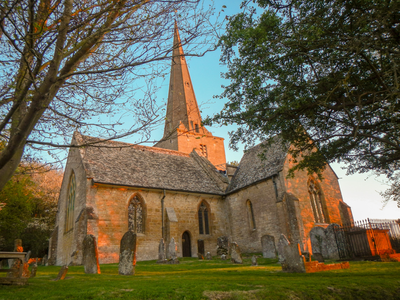 In addition I was extremely fortunate on the first evening of my stay to have time after dinner to walk up to the unspoilt village of Saintbury. There are a few walking routes – I turned off the main road (B4632) on to a byway which is a continuation of the Roman Ryknild Street and subsequently turned on to a small footpath. Disappointingly the church is closed for repairs so I didn’t see the medieval wall paintings. However I was there at the right time to view a stunning sunset across the Vale of Evesham – a magnificent end to my day!