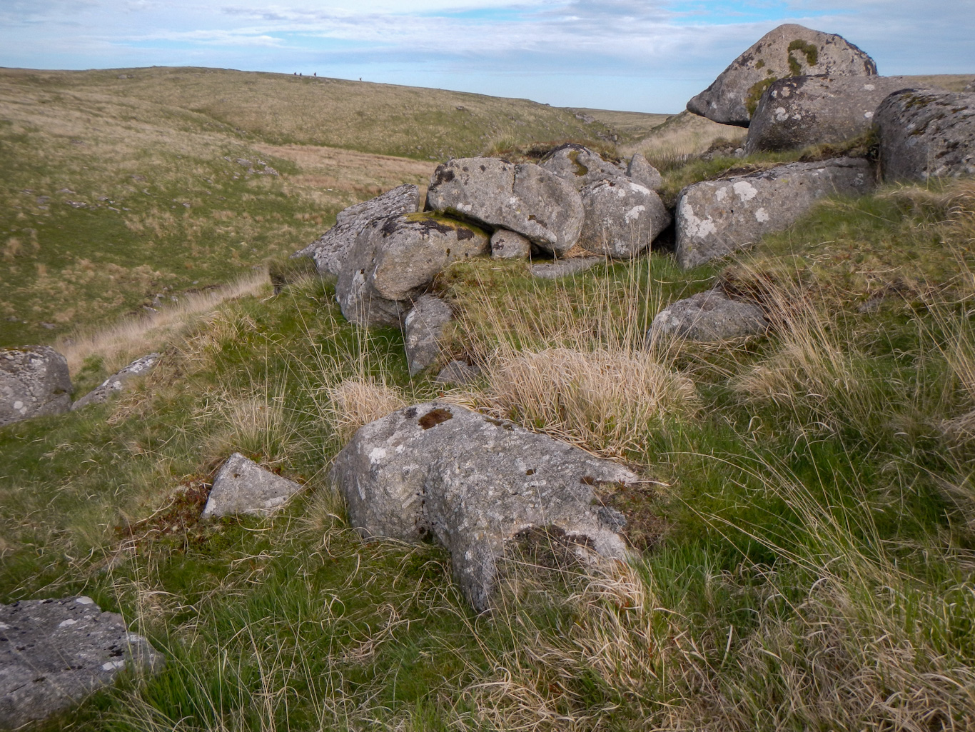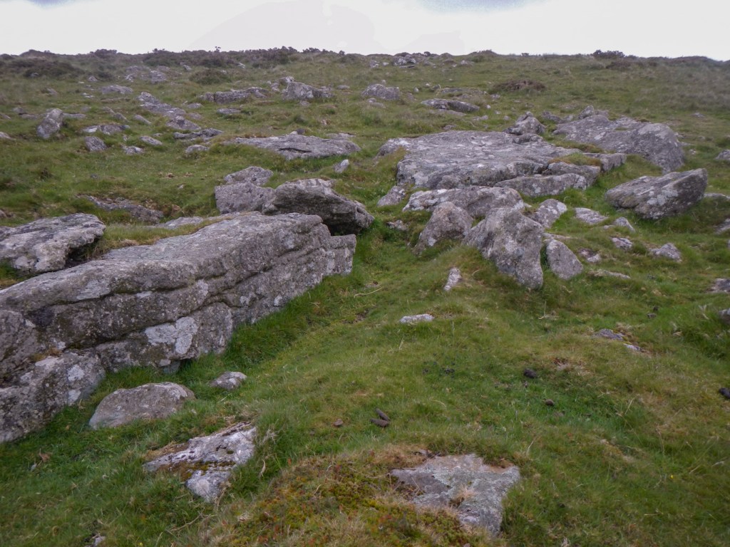 Soon I was on my way again contouring as much as possible towards Cut Hill Outcrop. It’s neither on the LDWA list nor marked on the OS map. However the Tors of Dartmoor database notes a possible letterbox under the platform. I found the platform easily but sadly no letterbox.