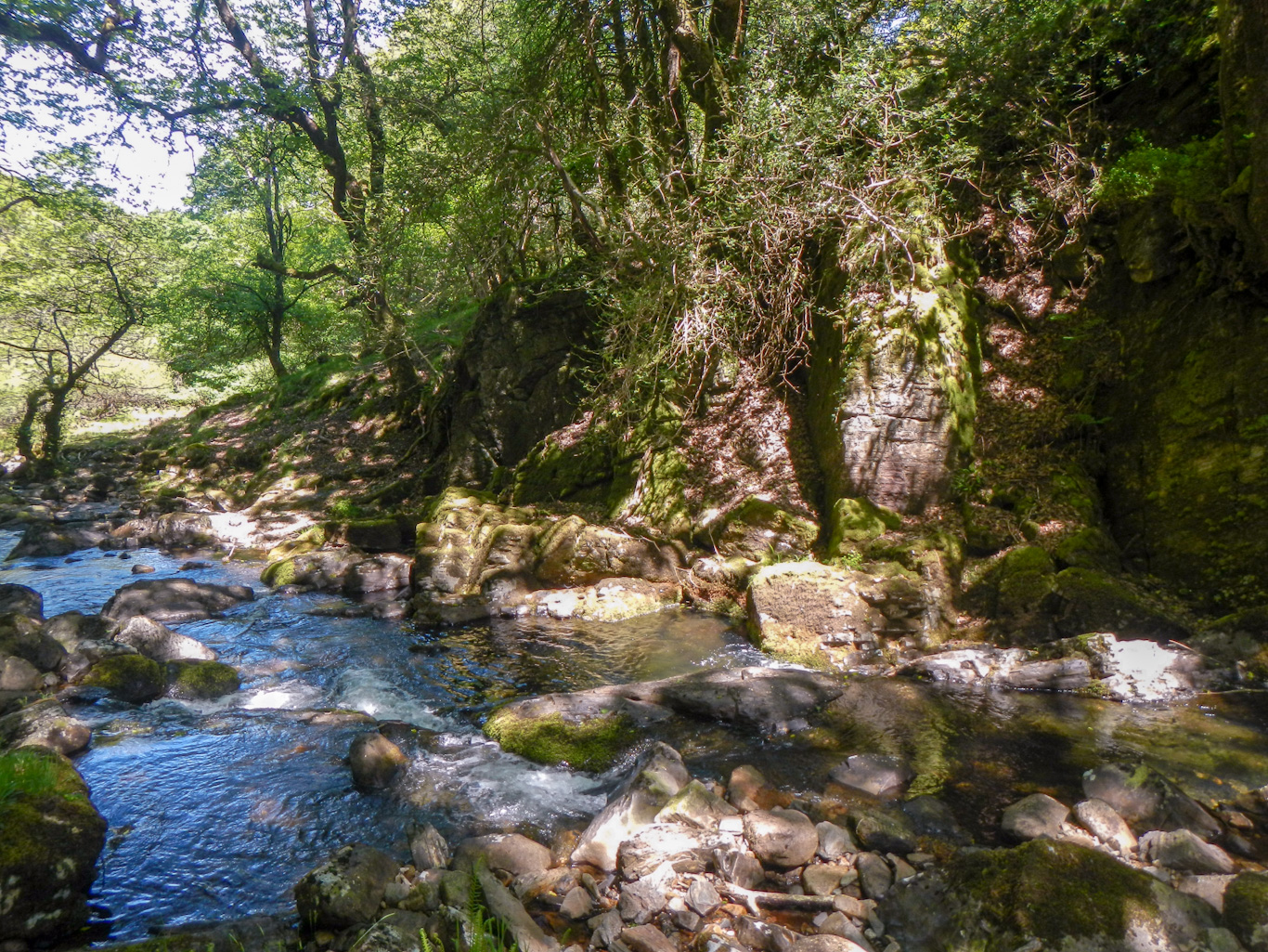 With all the time spent looking for stones, it was getting late so I headed directly for Plym Steps where I crossed the river easily and looked for a camp spot on the other side. Soon my tent was up and water collected ready to “cook” dinner. Unfortunately that was the time when the cattle on the other side of the river decided to cross at Plym Steps too. They looked very frisky so I threw everything back into my rucksack and took my tent down. The cattle were ever closer as I made an escape bid, carrying my packed tent to save time needed to fit it back into my rucksack.