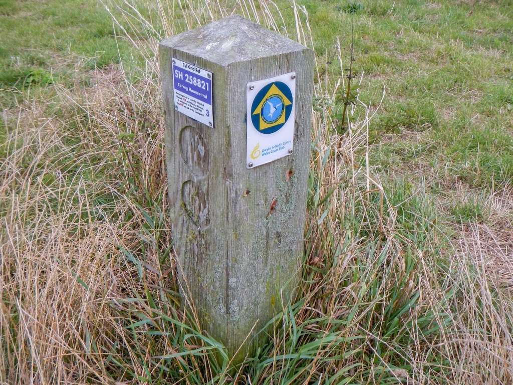 The church is actually the official start and end point for the circular walk round the entire coast of Anglesey encompassing Holy Island too, itself now part of the 870 mile long Wales Coast Path. Hence waymarking is generally good and the marker posts even include OS grid references as well as the helpful advice to phone 999 and ask for Coastguard in case of emergency.
