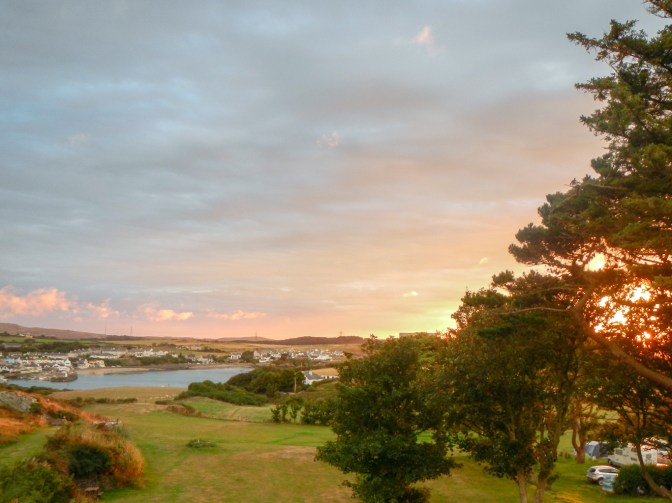 I felt that I couldn’t walk another step at that stage. My husband dropped me off in Cemaes on “mainland” Anglesey as we passed through before taking the car to our nearby hotel and himself walking back the short distance to the village. We ate fish and chips as we overlooked the harbour. Even after a long rest, I struggled to walk back to the hotel and my husband went on and fetched my crutches from the car to help over the final stretch. However it was a lovely sunny evening and I did manage to leave our hotel room later to capture a view of the stunning sunset.