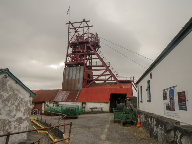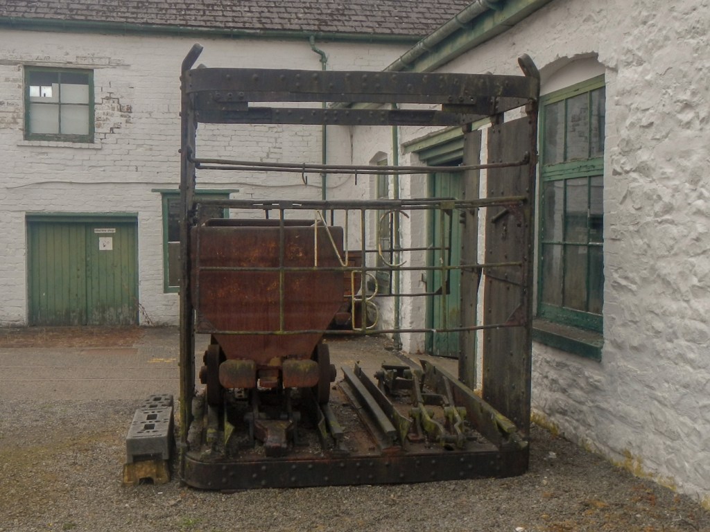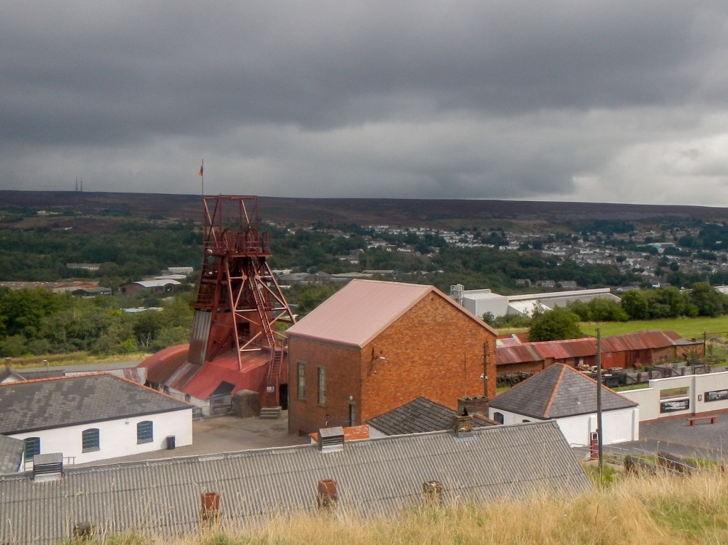 The Big Pit mine was the main attraction, drawing us to visit. This was a working coal mine from the nineteenth century, employing well over a thousand people at its peak in the early twentieth century and then declining and eventually closing in February 1980. The position of Blaenavon near a fault line means that not only coal was available but there was also iron and limestone in the area – all that was needed for smelting iron. There is an old iron works that is open to visitors but our timing and the limitations of my walking ability imposed by my recently fractured ankle meant we didn’t have time to go there as well.