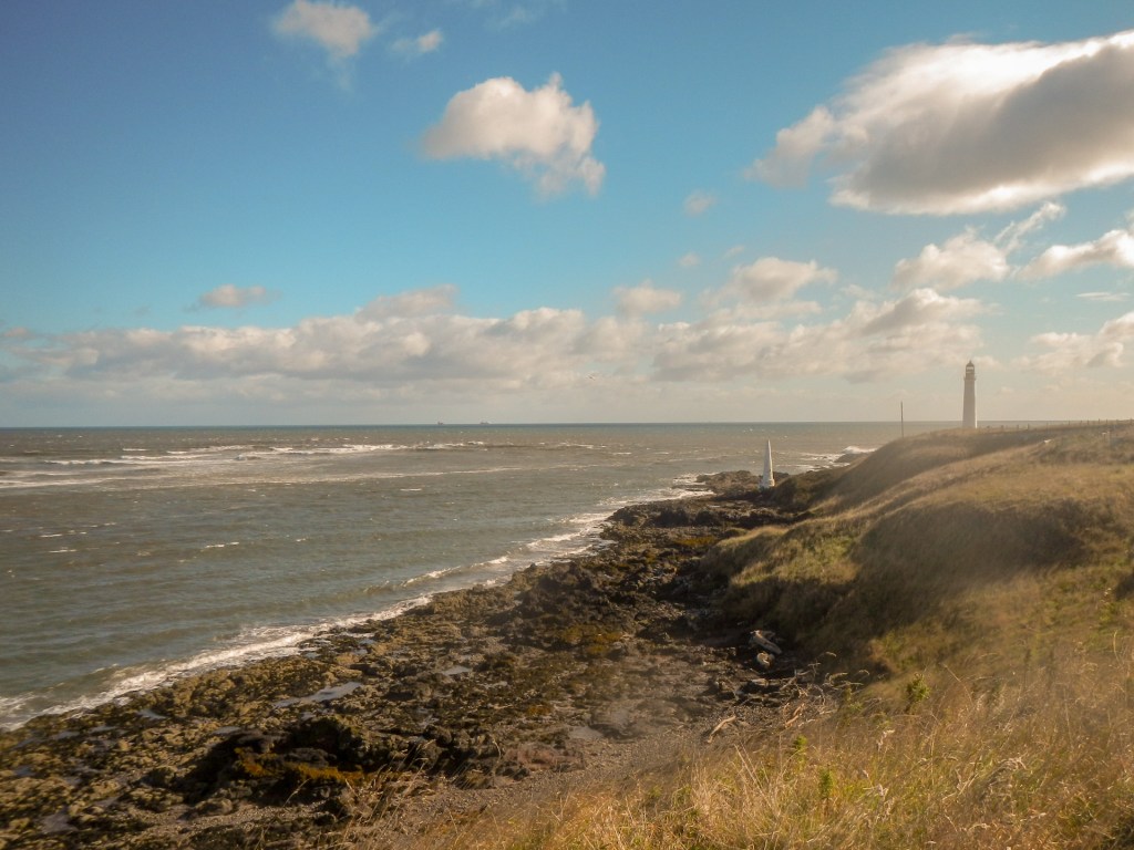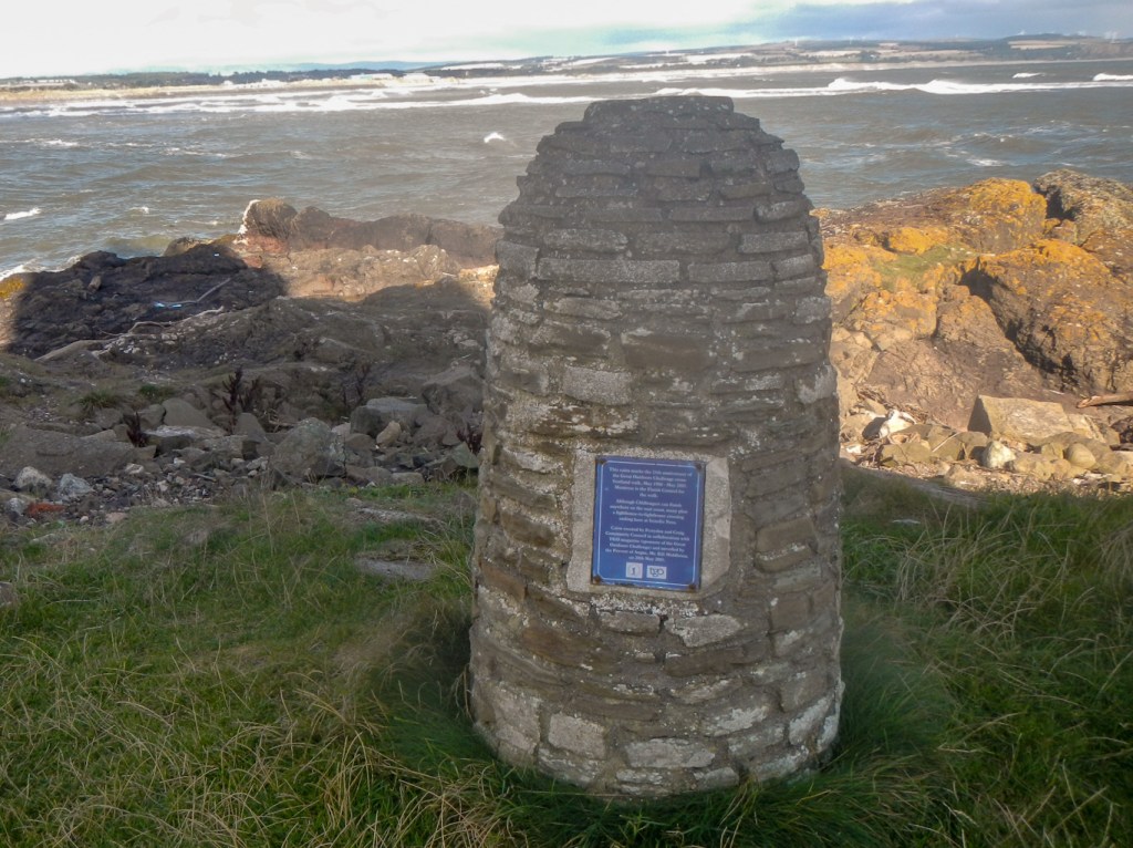 As we headed towards the prominent 39m high white tower, engineered, like so many lighthouses, by the Stevenson family, we were relieved to have the powerful wind on our backs, aiding our progress. We learnt that during the Second World War the lighthouse tower had been painted black so as not to provide a “helpful” daymark for the enemy. As we walked along the path, we also discovered two prominent daymarks to guide shipping on the narrow navigable channel between treacherous rocks on the one side and equally dangerous sandbanks on the other.