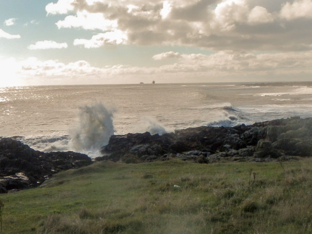 The wind and state of the tide made for impressively powerful breakers over the prominent rocks.