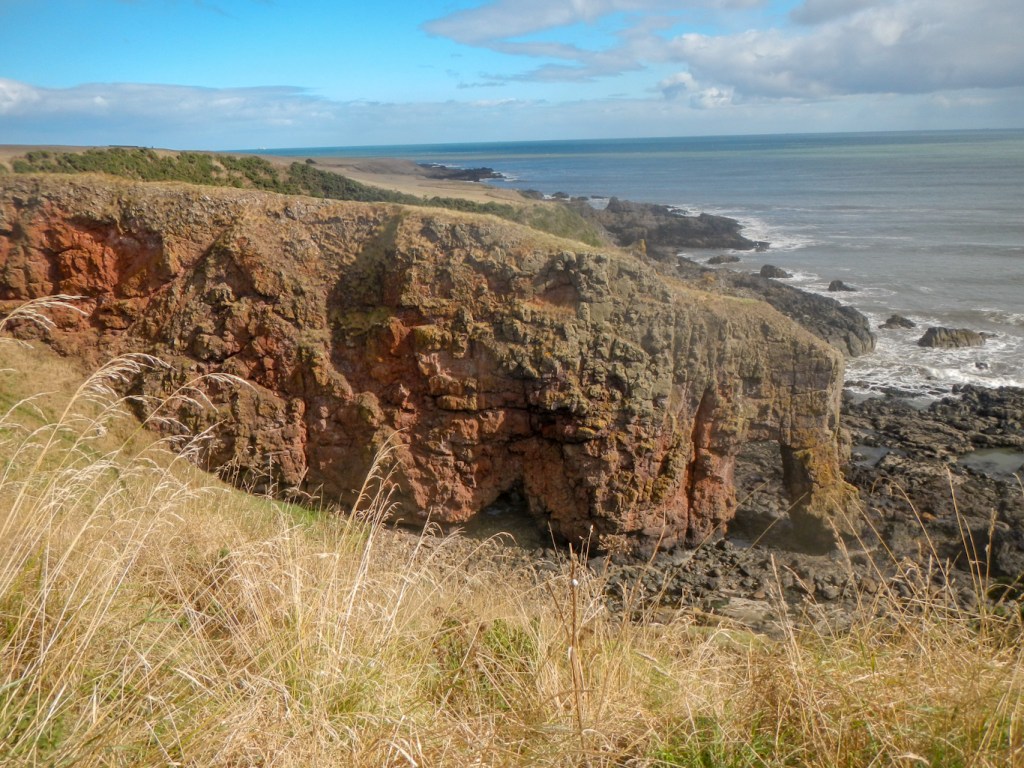 Soon we were passing to seaward of the lighthouse, noting a prominent cairn to the TGO challenge, an annual backpack from various points on the west coast of Scotland to the east coast and culminating in a completion celebration in nearby Montrose. It’s something I would be keen to try to enter sometime, although prospective entrants always outnumber the places available.