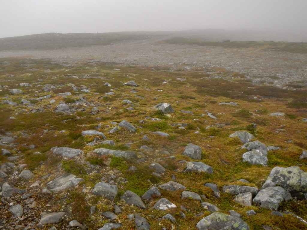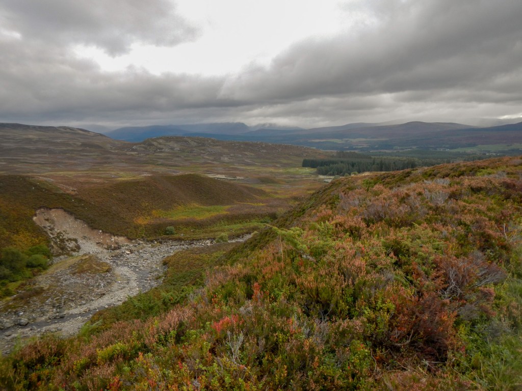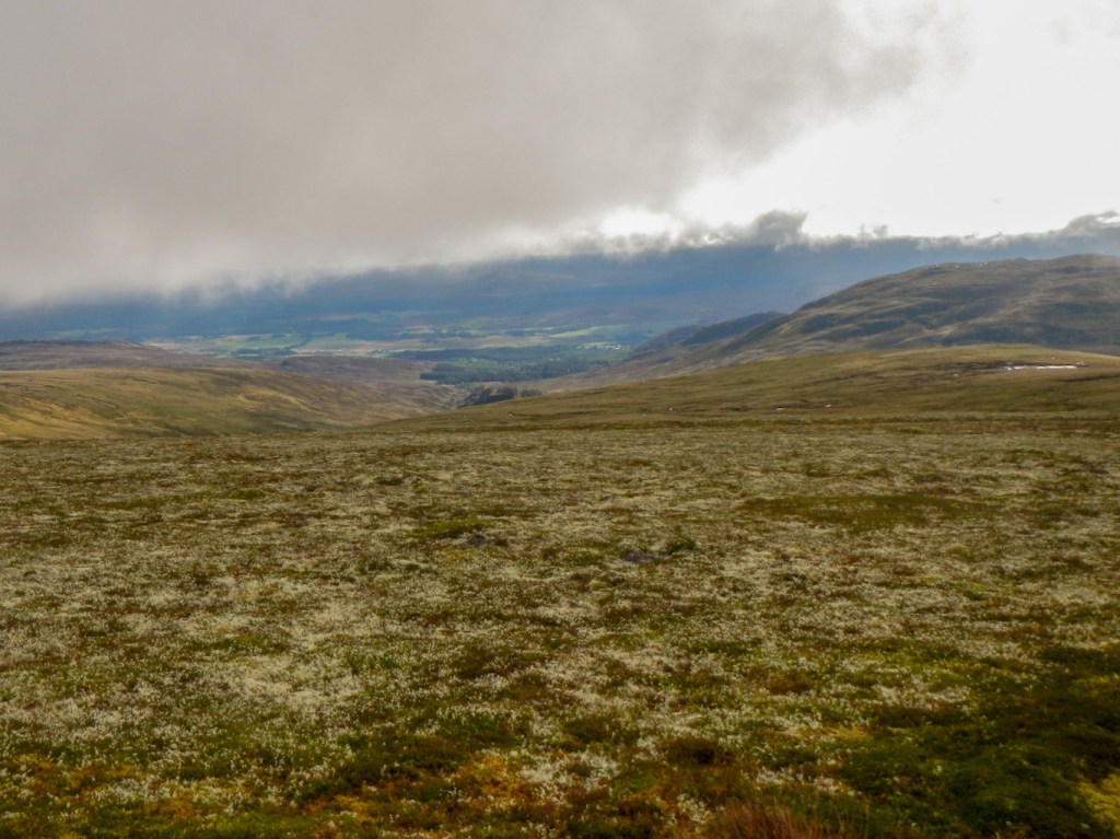 The views over Strathspey should have been superb. Unfortunately they were nonexistent and we just continued to ascend the stony track. False summits abounded but eventually we reached a cairn at 843m (Beinn Bhreac). Sadly the promised views over the remote Monadhliath were also non-existent.