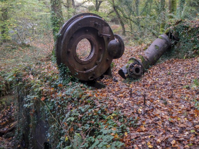 I returned to the Dartmoor Way following the River Tavy upstream. Amazingly I saw about eight people in three different groups within a minute or two all walking the opposite way on this short stretch of path. As it happened, these were the last people I saw until I returned to my car a few hours later. I left the Dartmoor Way where the path crosses the Tavy and continued a few yards further upstream. I saw a large metal structure at the site of some old mine workings. The path left the river bank to go through a couple of fields and reach the road. I headed back towards Peter Tavy then took a smaller road towards Smeardon Down.