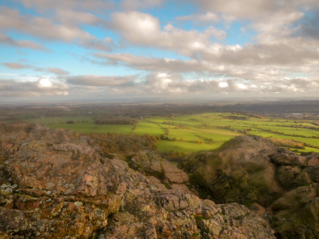 Once I left the wooded slopes, the views were magnificent and clear so I kept stopping to admire the scenery as, at least initially, the best views were behind me. There are a few rock formations including a cleft called the Needle’s Eye. The rock of the hill is of volcanic origin although not actually an old volcano.