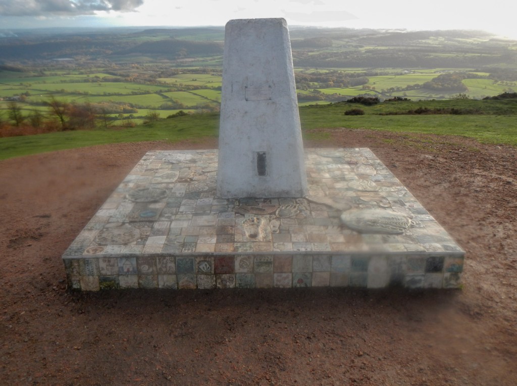 The trig point has plaques on it and a decorated surround and is dedicated to the memory of a local ordnance survey surveyor.