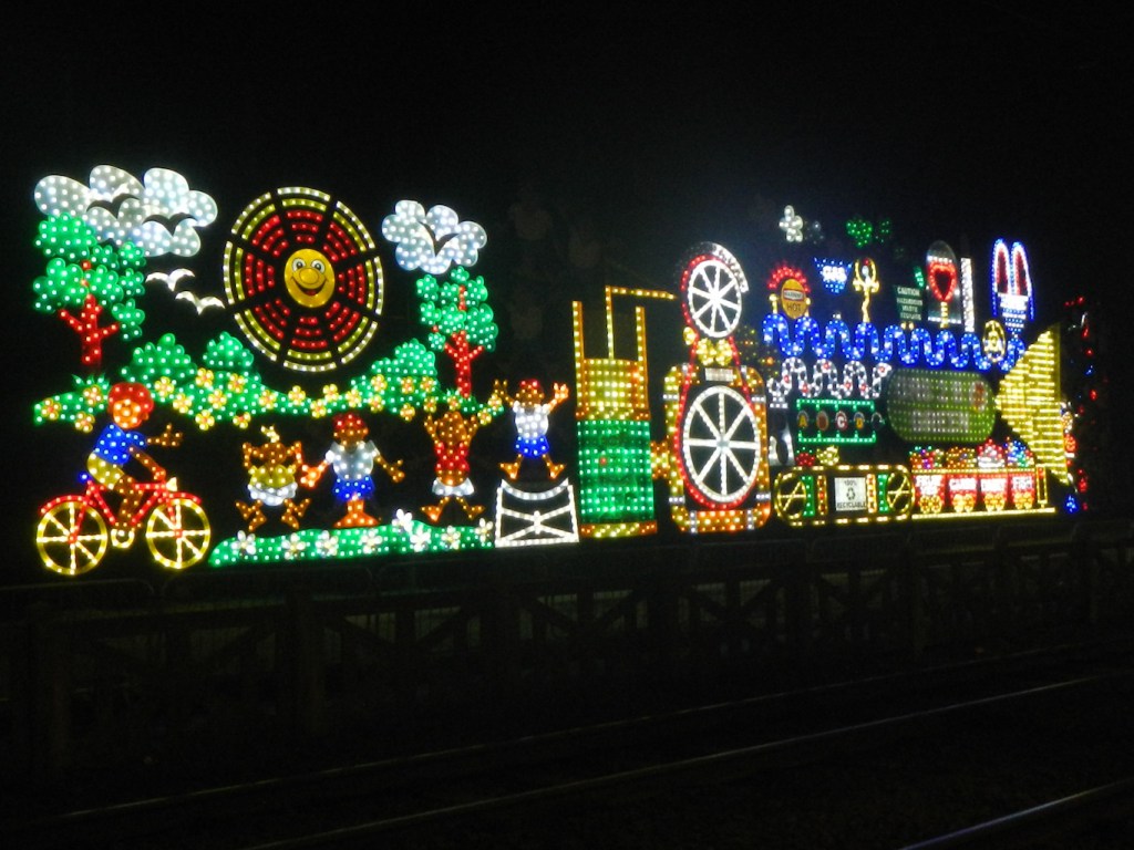 Having satisfied our hunger, we headed off on foot to view the tableaux – including Sooty and Sweep, Alice in Wonderland, the Haunted Hotel, Teddy Bears Picnic (the oldest of the illuminations) and many more.
