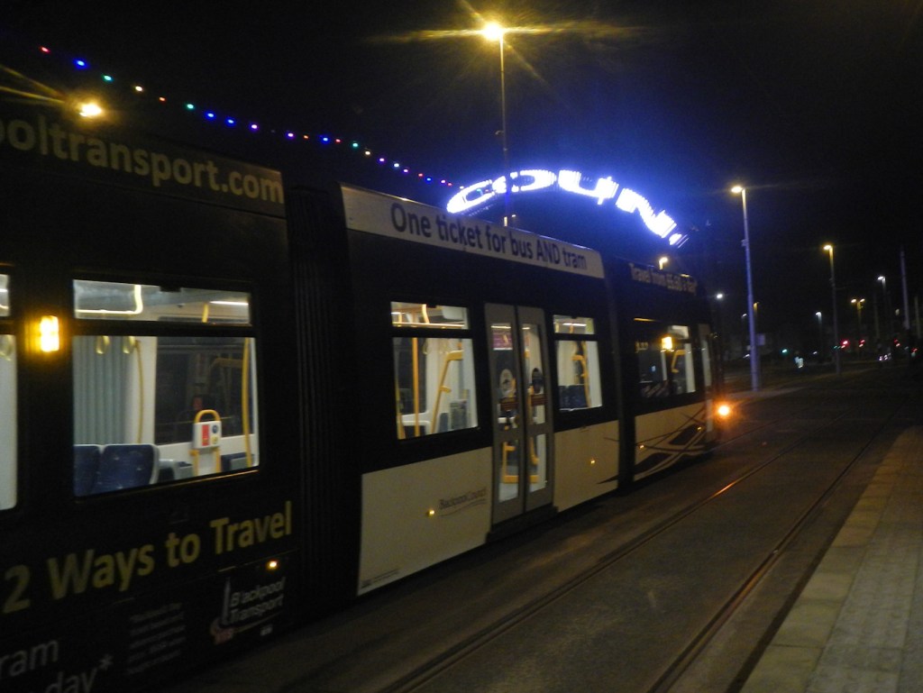 After walking the “Golden Mile” alongside the Neo Neon displays, we hopped on the tram again down to the south end of the lights. Rather belatedly this was actually where we saw the “Welcome to Blackpool” arch. All that remained was to return to our start point passing the light displays again and then walk the few steps back to The Arthington Guest House.