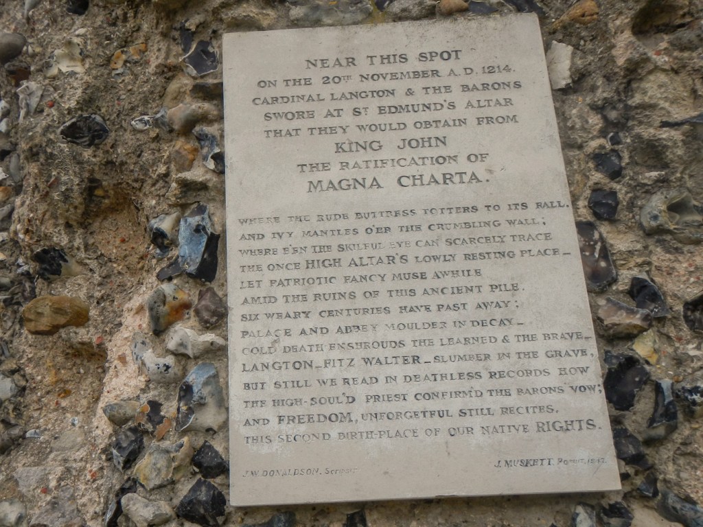 The first step towards signing the Magna Carta was made at Bury Abbey. In 1214 many barons of England, summoned to Bury by the Archbishop of Canterbury, swore an oath to stand against King John. The Magna Carta is of course recognised as a foundation for individual freedoms and democracy to this day.