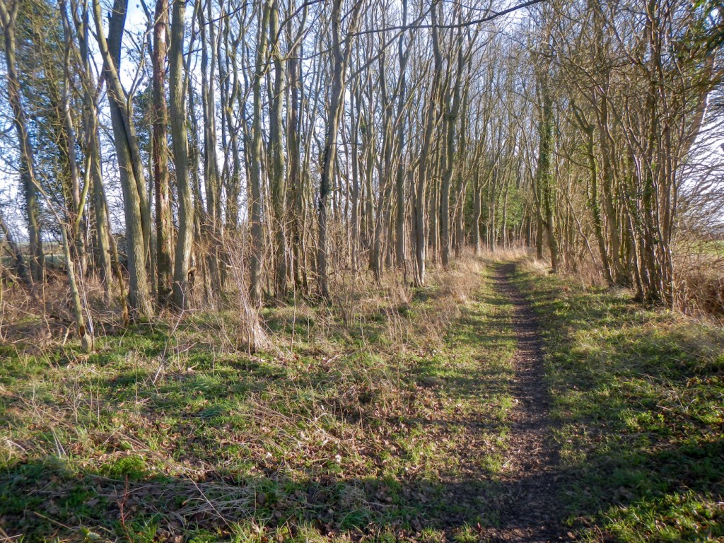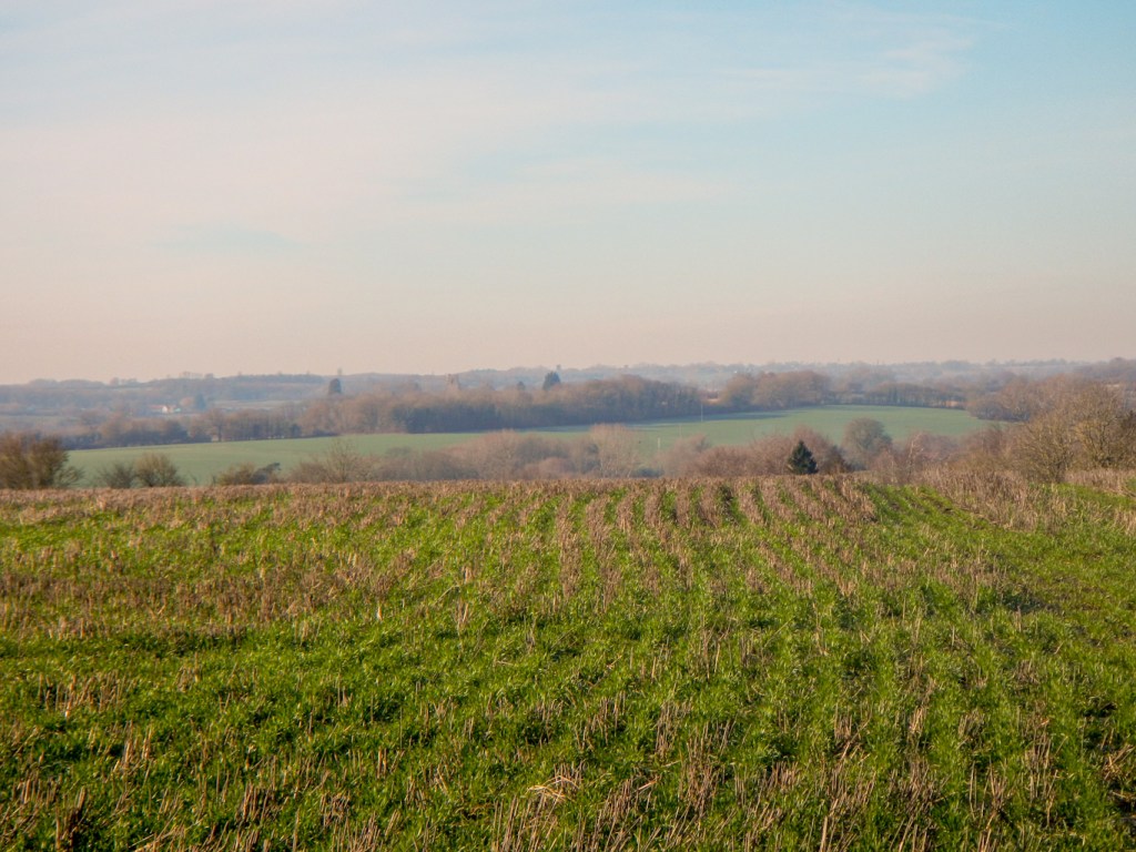 The second half of the walk was similar to the first, although the ground began to thaw and my boots became heavy as they were encrusted with a strongly adherent layer of tenacious chalky boulder clay – good fertile soil for agriculture as suggested by the huge fields growing a variety of crops.