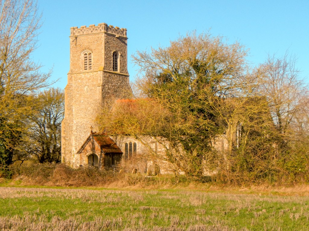 Soon after passing the point where the St Edmund Way joins the Bury to Clare walk, I passed the only trig point of the walk – 84m above sea level. The sun was in my eyes as I proceeded south, but it did mean that it felt warmer than the true temperature – there was virtually no wind. There followed the longest continuous stretch of road walking on the trail, past flat farmland, large isolated houses and a couple of small hamlets. However this guaranteed a brisk early pace which was positive given the length of the walk and limited daylight hours.